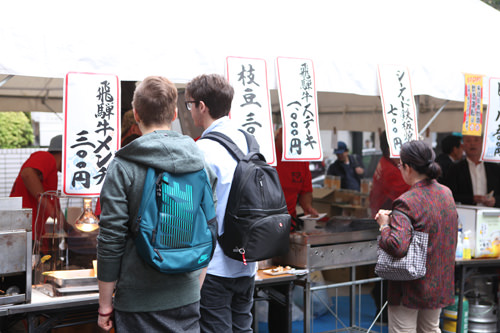 江戸の屋台をイメージしたそばや天ぷらの露店をはじめ、海鮮焼きやコロッケなどが振舞われました。