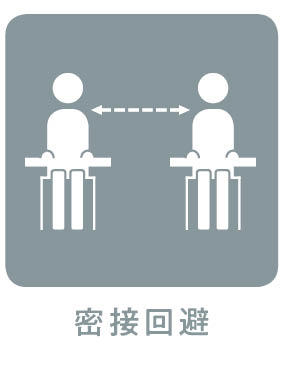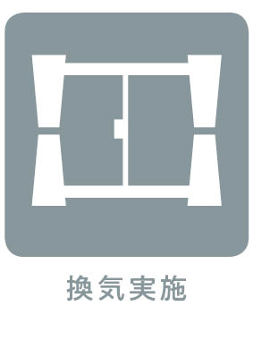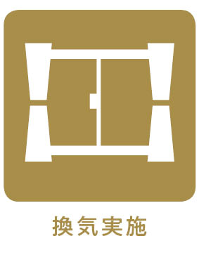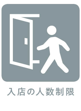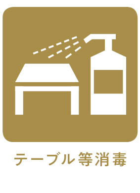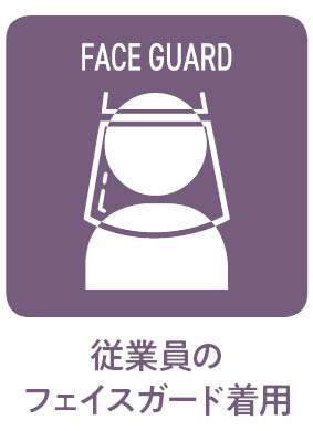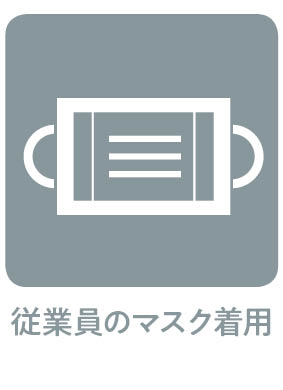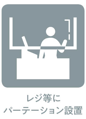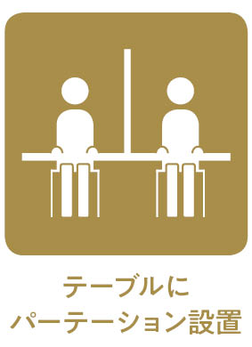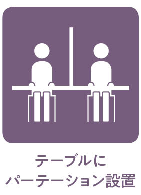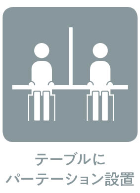 従業員マスク >> 消毒液設置 >> 人数制限 >> 密接回避 >> テーブルパーテーション >>