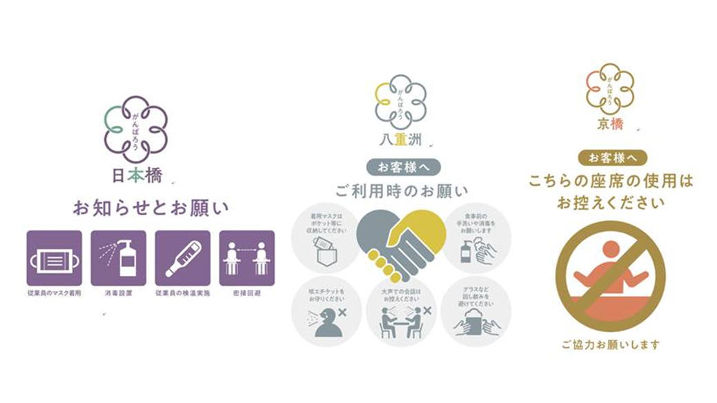 緊急事態宣言が解除され、八重洲・日本橋・京橋のまち中でも、徐々に営業を再開するお店が増えて来ました。最近店頭で目に付くのが、感染防止対策の取り組みを手書きしたもの。「アルコール消毒薬液あります」「お席の間隔を空けています」など様々です。