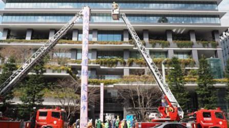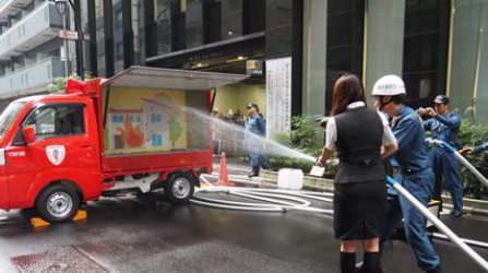 京橋駅前にある東京スクエアガーデンにて消防演習