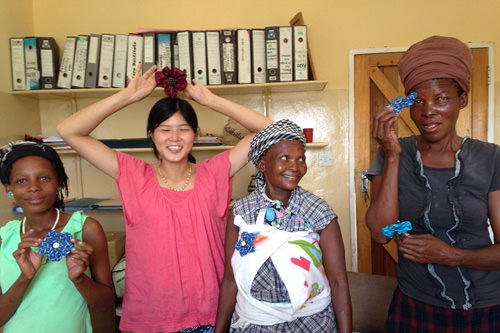 「ボツワナのセントラル県ボテティ郡庁に派遣された私の任務は、村に仕事をつくり、収入を向上させること。現地の人たちのやりたいことを引き出した結果、アフリカの伝統的な布地“マテイシ”を使った手作りアクセサリーのプロジェクトを立ち上げました。観光客相手に販売するほか、オンラインショップ『Gift from Botswana』を通じて売り出すにあたり、物流コストは、当時文京区後楽にあったサイボウズへ商品を一括して送り、保管や買い主への配送を会社のCSR部員に手伝ってもらうことで抑え、オンラインショップのモデルはCSR48メンバー、撮影についてもCSR部員が活躍してくれました」。