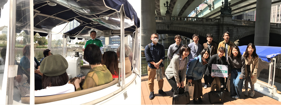 右)新入社員研修では、舟運というツールを通し土木技術やそれに関わる仕事を知る
