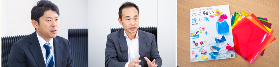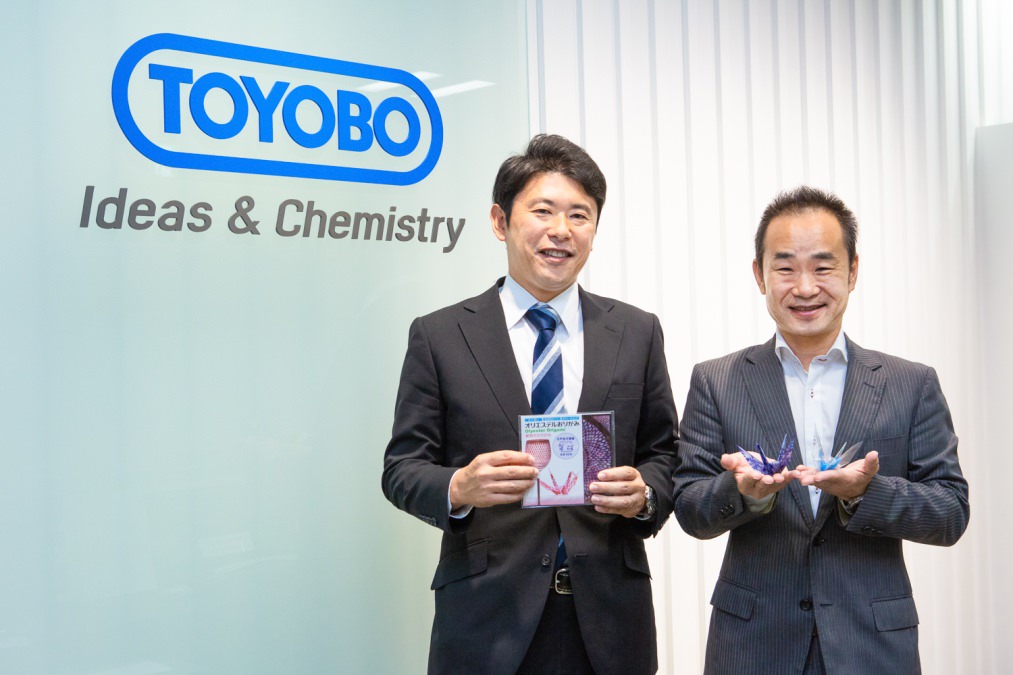 そんなおりがみ界のイノベーションともいえる「オリエステルおりがみ」だが、もともとおりがみとして開発されたものではなかった。同事業を担当する東洋紡・橋田智之さんとグループ会社である東洋紡STC・鈴木孝治さんに、「オリエステルおりがみ」の誕生秘話からこれまでの軌跡を振り返ってもらった。