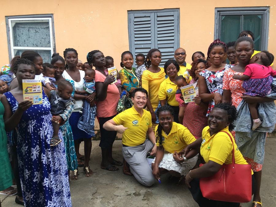 連携先のガーナ政府(ガーナ保健サービス)の看護師さん(高橋さん以外の黄色のポロシャツの方々)との地道な普及活動により、お母さんの栄養バランスについての関心も高まり、KOKO Plusを継続して使用するようになっていったという