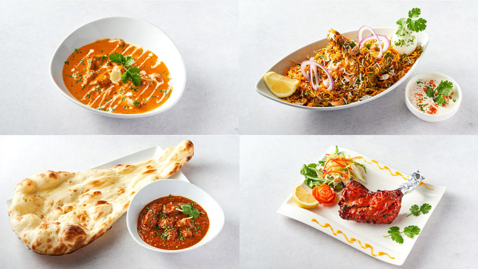 上左)BOMBAY SIZZLERSのバターチキンカレー、上右)チキンビリヤニ