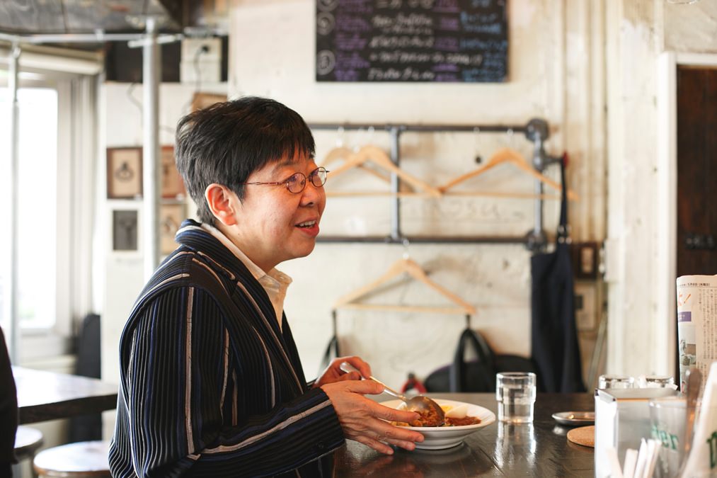 2012年にオープンしたカドノは、昼はカレー、夜はスパイスの効いた中東系の料理やワインを楽しめるバル。原田さんは7年ほど前から通っています。
