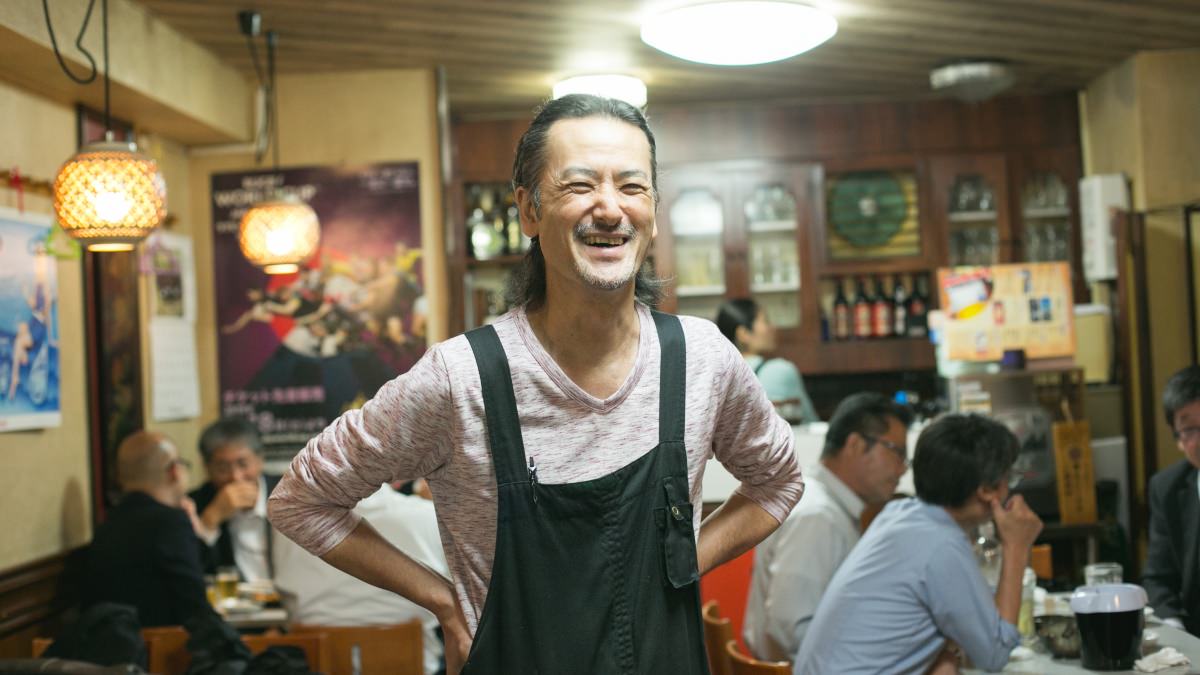 このエリアで育った店主の友野隆司さん。今日も笑顔で店に立ち、お客さんを出迎えています。
