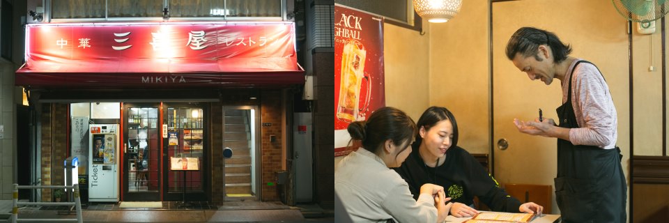 鍛冶橋通りと東仲通りの角にある「中華レストラン 三喜屋」は、地元の人や近隣の会社員に愛される「町中華」。昼はレストラン、夜は居酒屋として営業します。