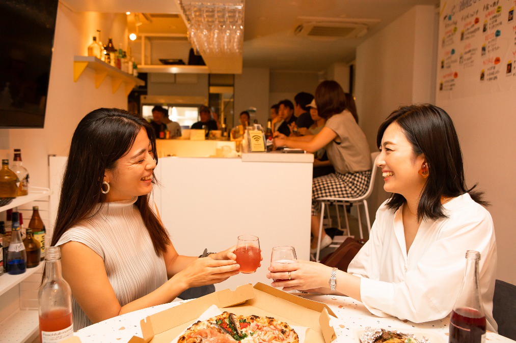 右)「店内で焼き上げるピザが本当においしいんです」と佐藤さん