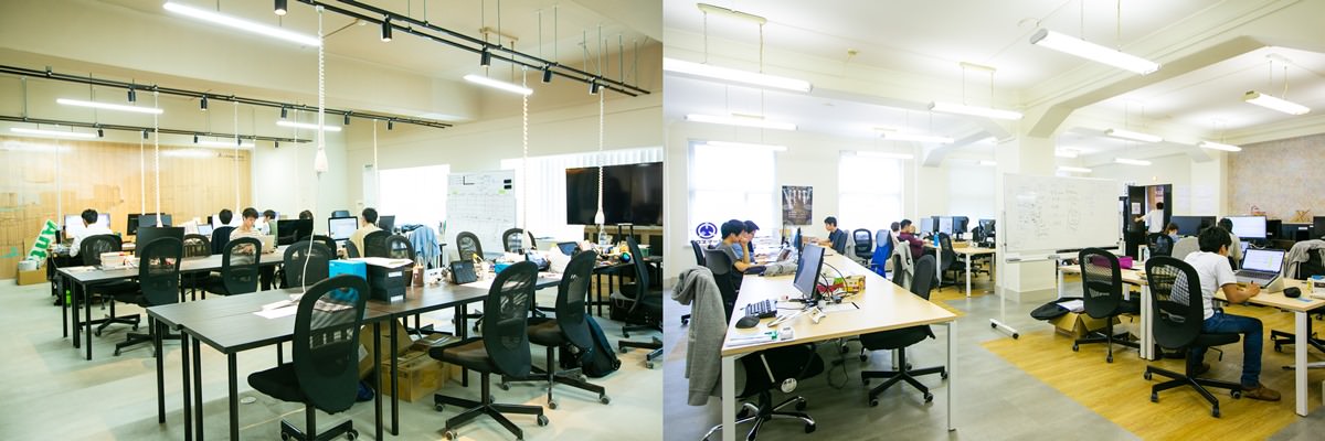xBridge-Tokyoは大部分がオープンな空間で、異なる会社のメンバーが隣り合って座ることもある。独立したオフィスを借りる余裕がないから仕方なく、という面もあるかもしれないが、他社とオフィスを共有することにはメリットも多い。
