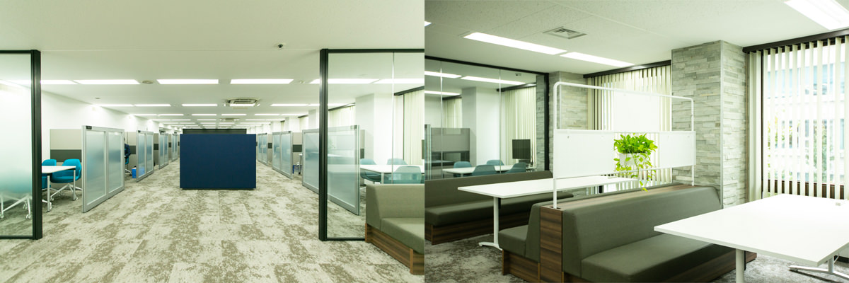 オフィス内にある打ち合わせスペース。予約無しで商談場所として使えるため、社員にも好評だという